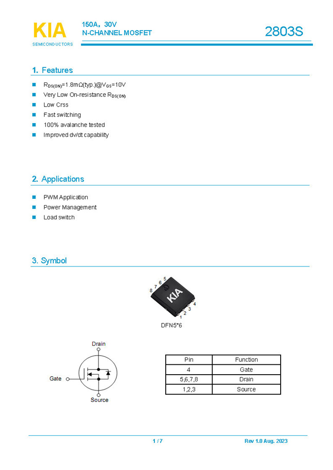 实亿国际参数: ID(A): 150 BVDSS(V): 30 RDS(ON): 1.8 Qg(nC): 112 Package: DFN5*6