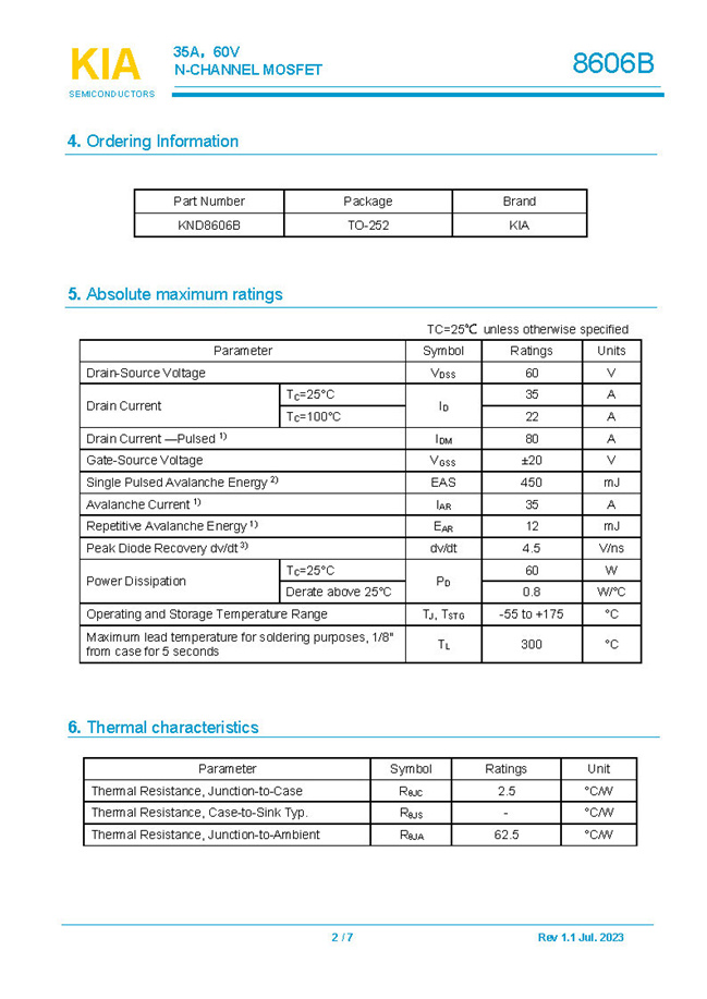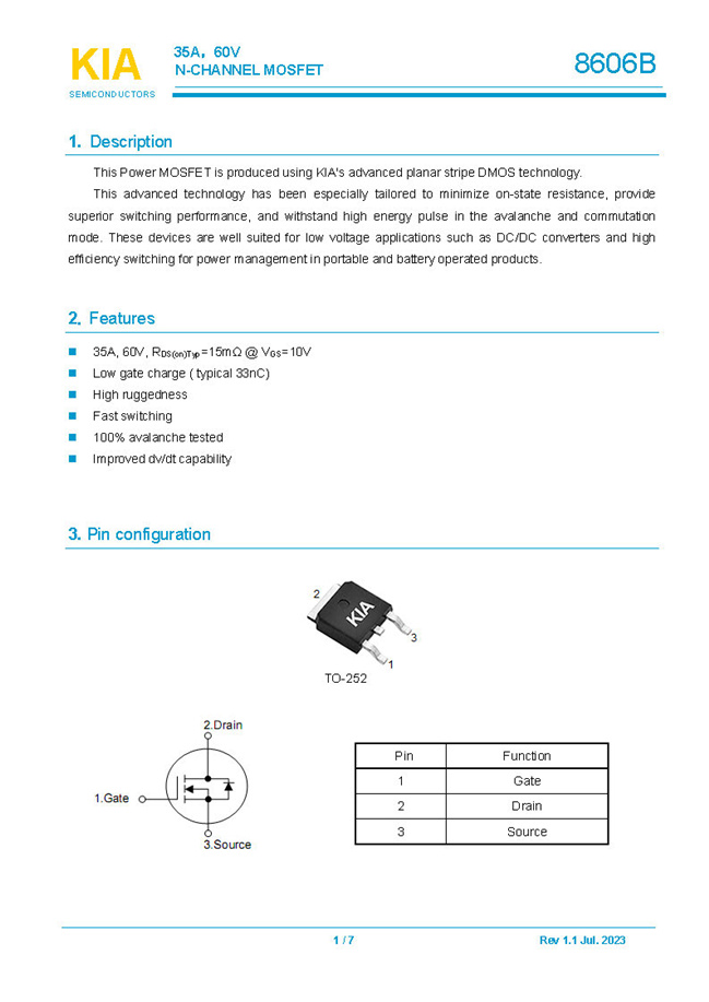 参数: ID(A): 35 BVDSS(V): 60 RDS(ON): 15mΩ Qg(nC): 33 Package: TO-252