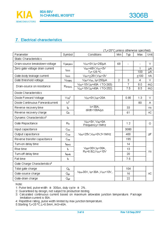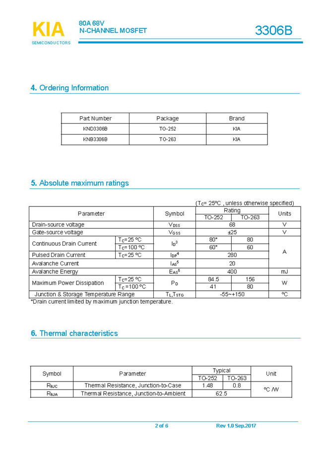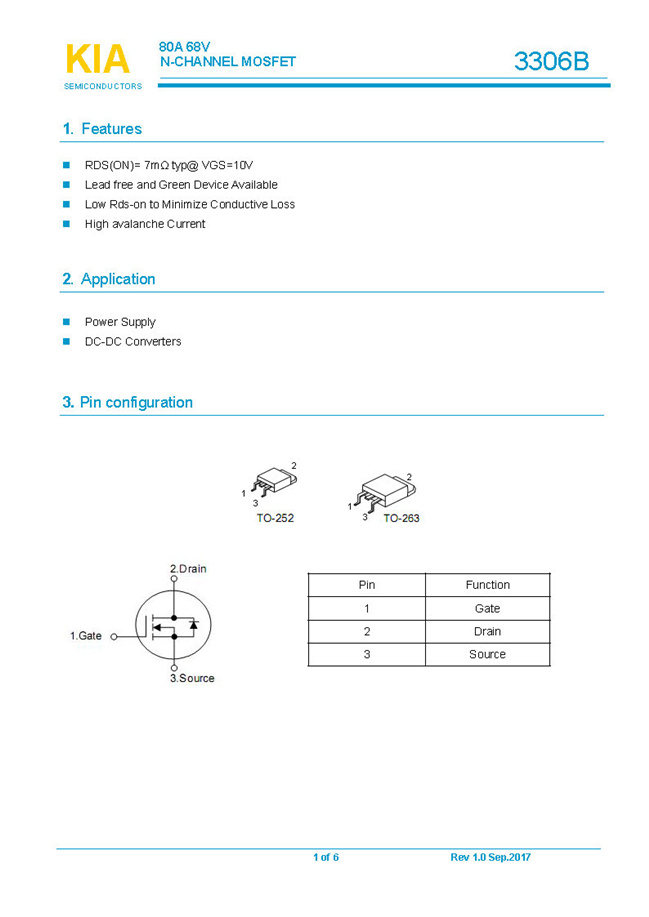 参数: ID(A): 80 BVDSS(V): 68 RDS(ON): 7mΩ Qg(nC): 104 Package: TO-252/TO-263