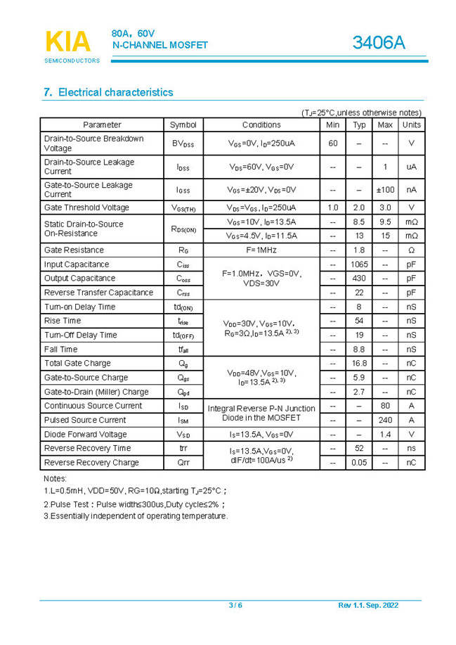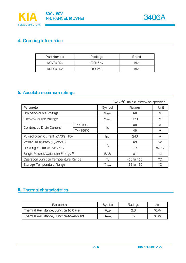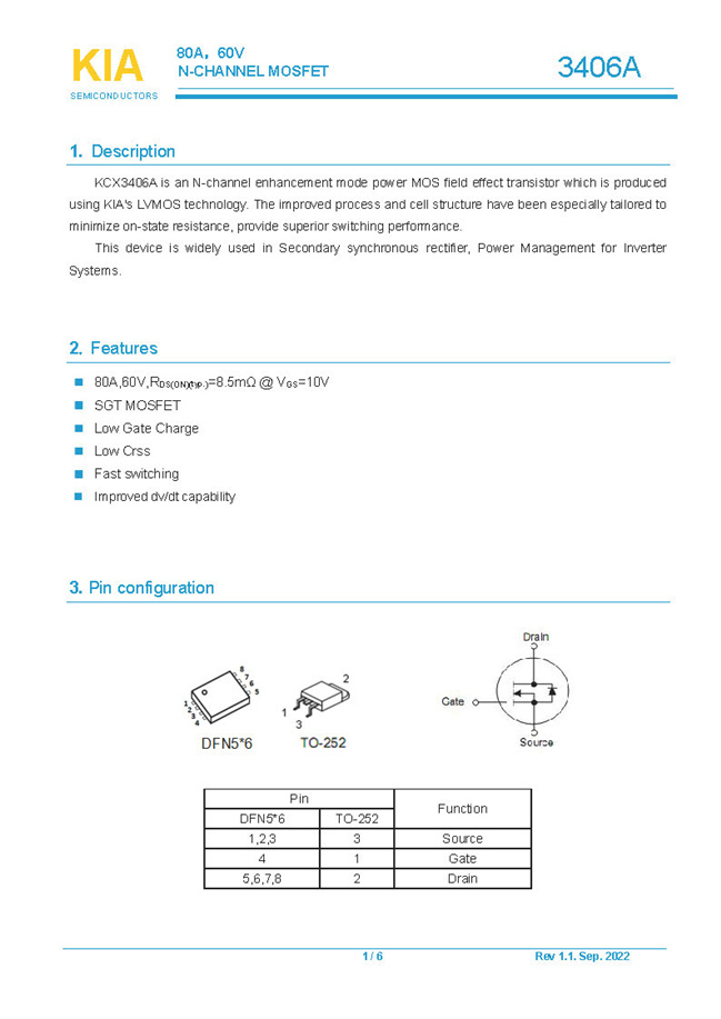 参数: ID(A): 80 BVDSS(V): 60 RDS(ON): 8.5mΩ Qg(nC): 16.8 Package: DFN5*6/TO-252