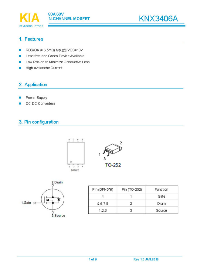 实亿国际参数: ID(A): 80 BVDSS(V): 60 RDS(ON): 6.5mΩ Qg(nC): 104 Package: DFN5*6/TO-252