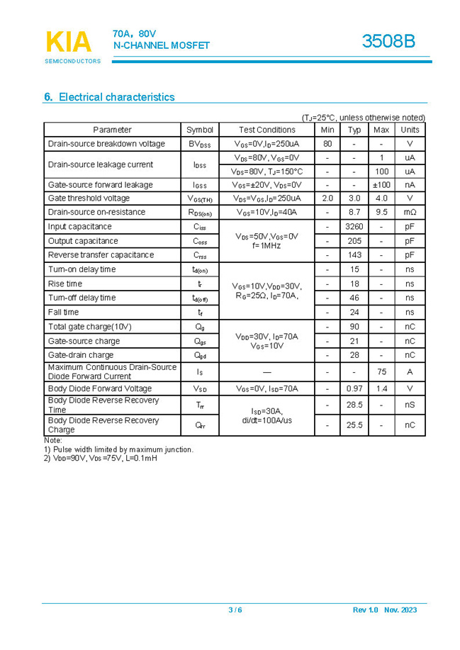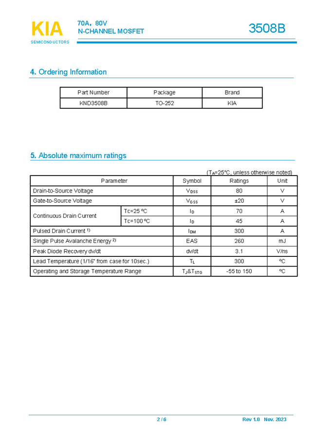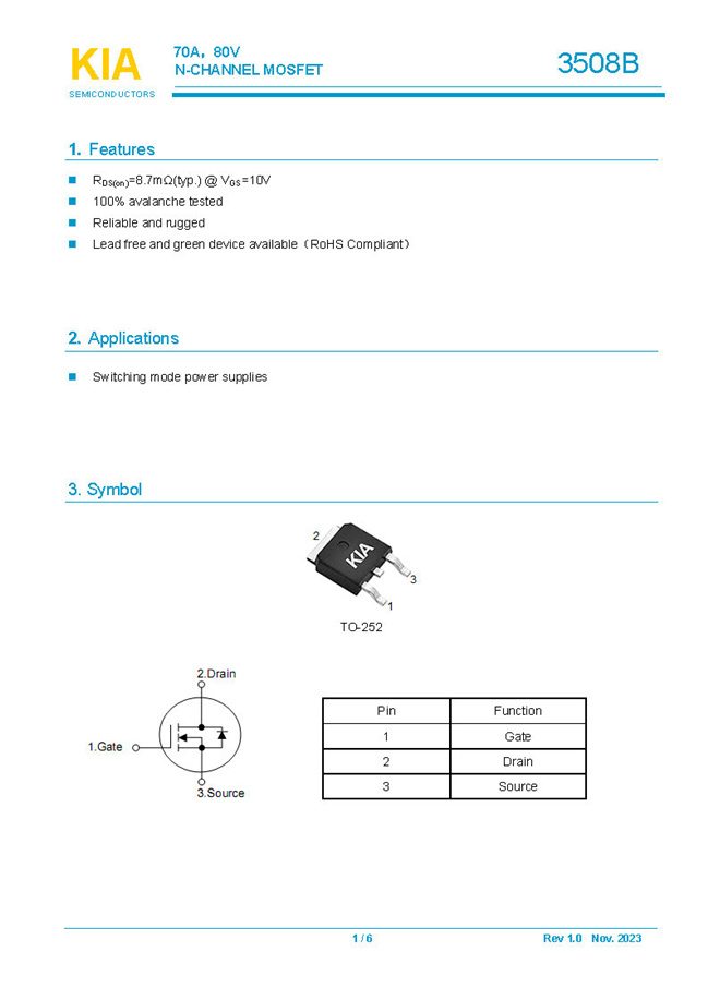 参数: ID(A): 70 BVDSS(V): 80 RDS(ON): 8.7mΩ Qg(nC): 90 Package: TO-252