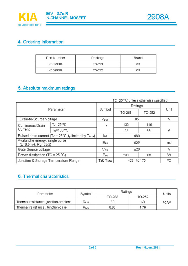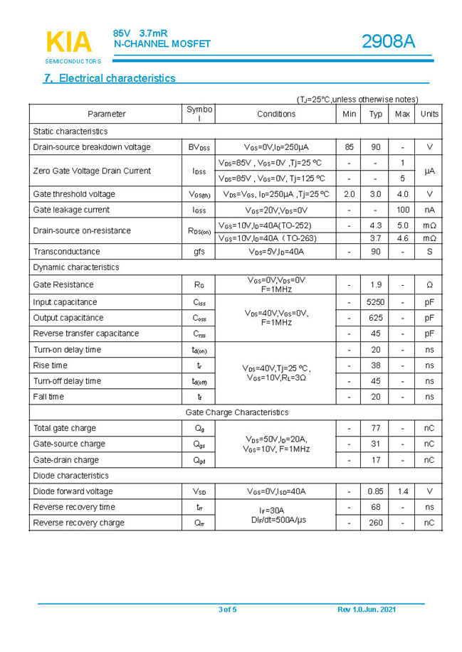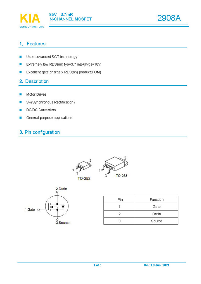 参数: ID(A): 130/110 BVDSS(V): 85 RDS(ON): 3.7mΩ Qg(nC): 77 Package: TO-252.TO-263