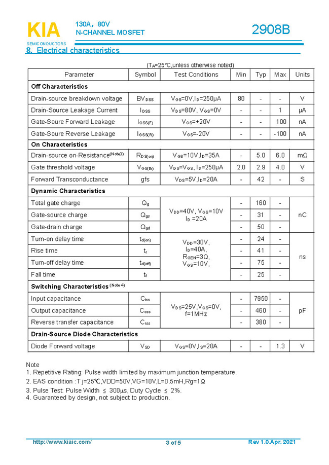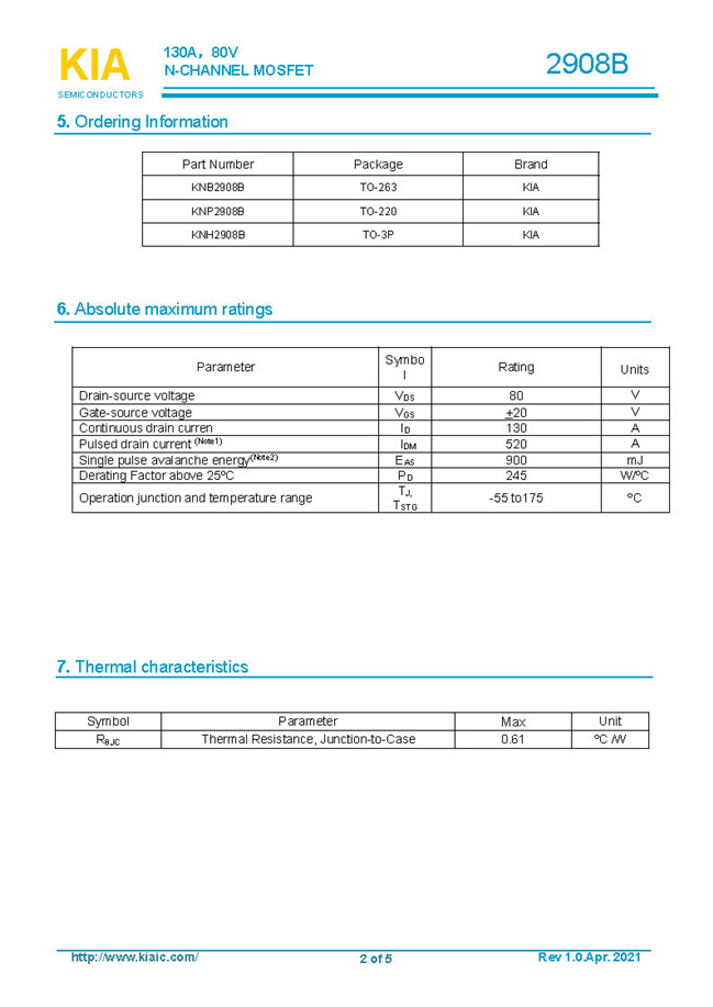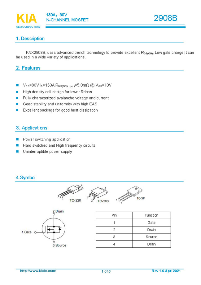 实亿国际参数: ID(A): 130 BVDSS(V): 80 RDS(ON): 5.0mΩ Qg(nC): 160 Package: TO-220.263.3P