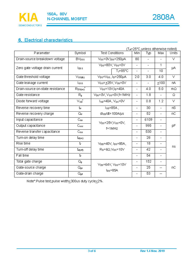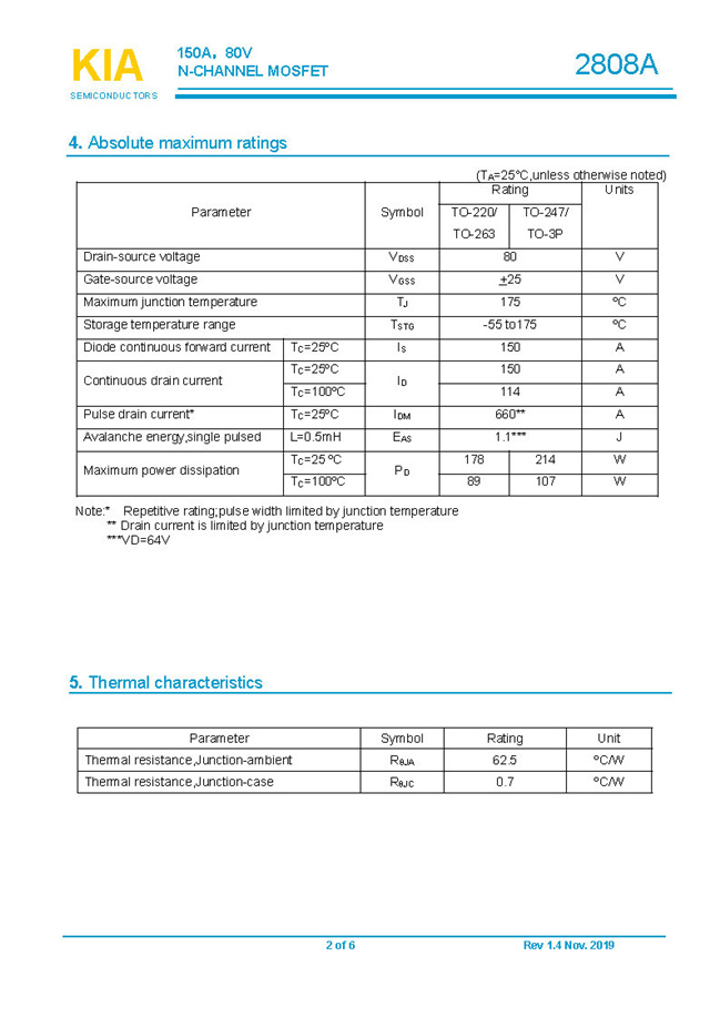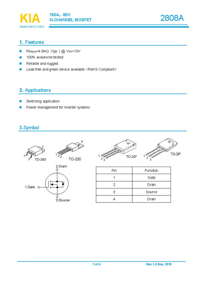 参数: ID(A): 150 BVDSS(V): 80 RDS(ON): 4.0mΩ Qg(nC): 152 Package: TO-220.263.247.3P