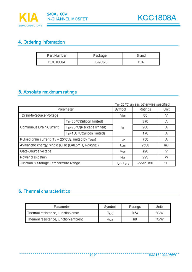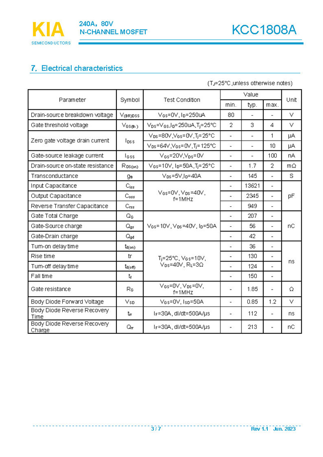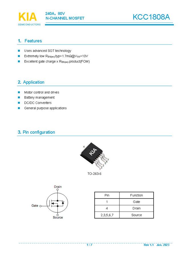 实亿国际参数: ID(A): 240 BVDSS(V): 80 RDS(ON): 1.7mΩ Qg(nC): 207 Package: TO-263-6L