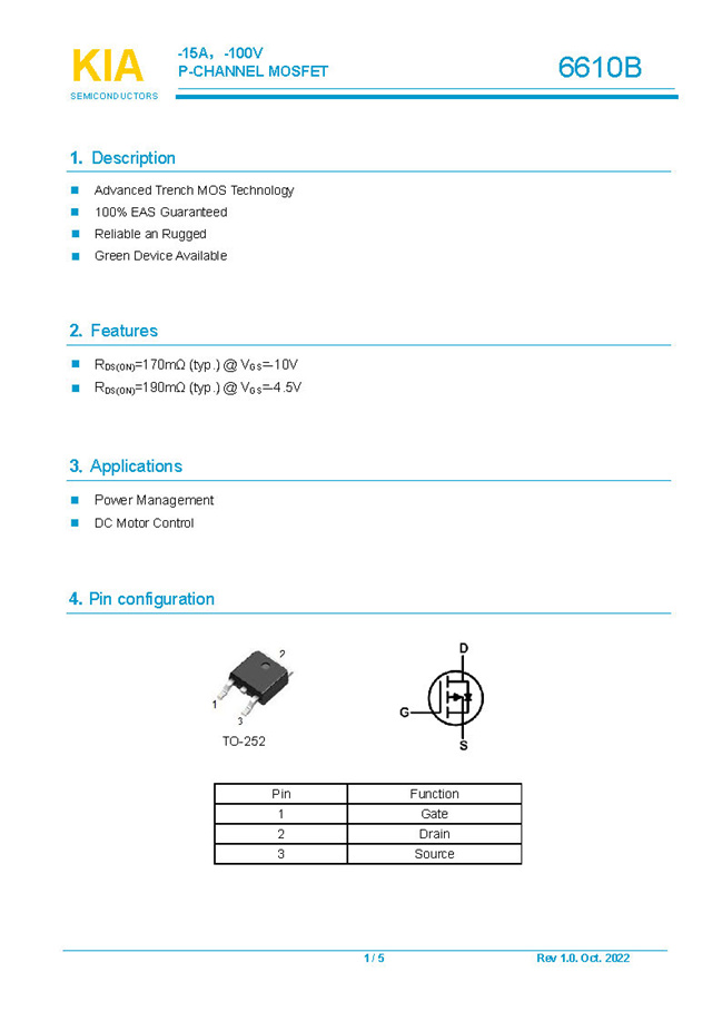 实亿国际参数: ID(A): -15 BVDSS(V): -100 RDS(ON): 170mΩ Qg(nC): 19 Package: TO-252