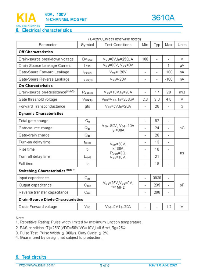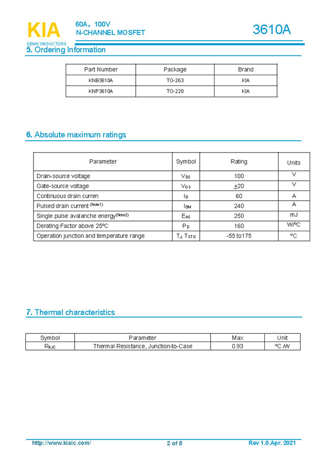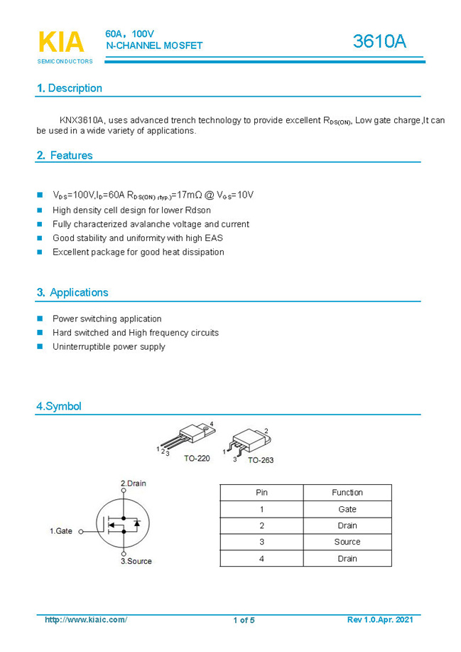 参数: ID(A): 60 BVDSS(V): 100 RDS(ON): 17mΩ Qg(nC): 82 Package: TO-220.TO-263