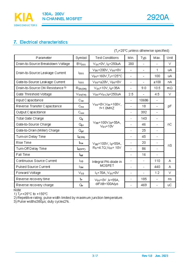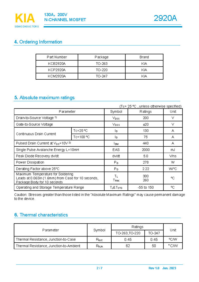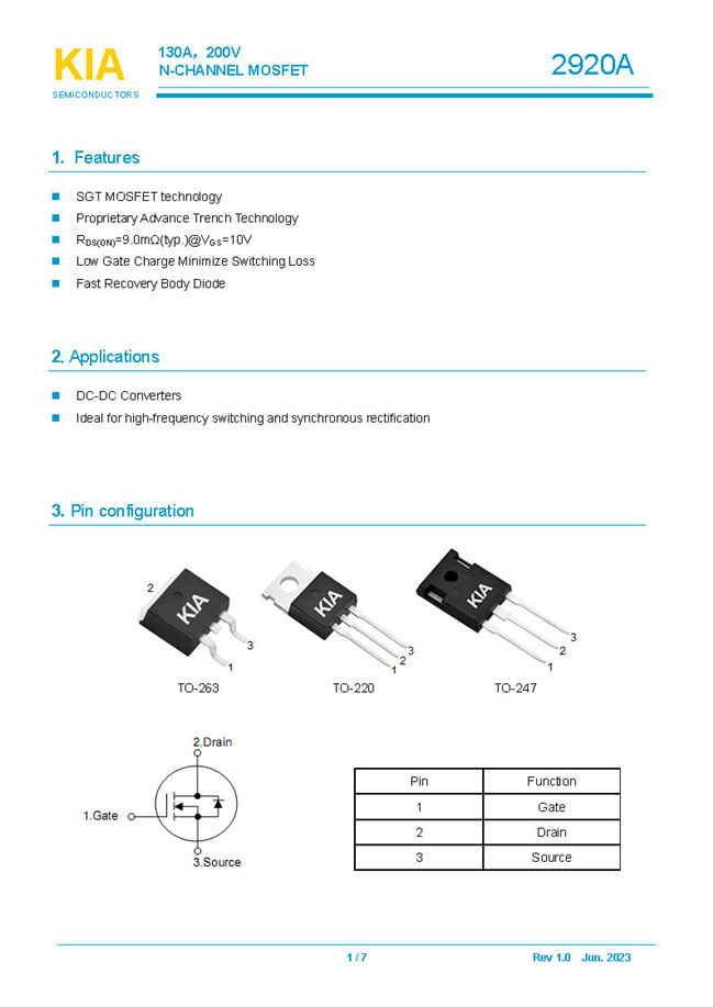 参数: ID(A): 130 BVDSS(V): 200 RDS(ON): 9mΩ Qg(nC): 143 Package: TO-263.TO-220.TO-247