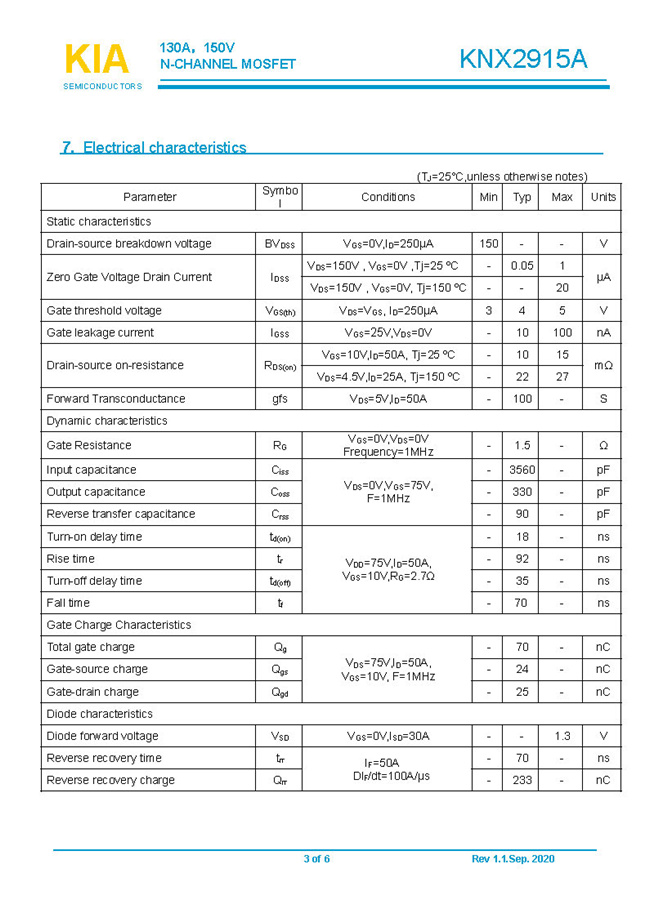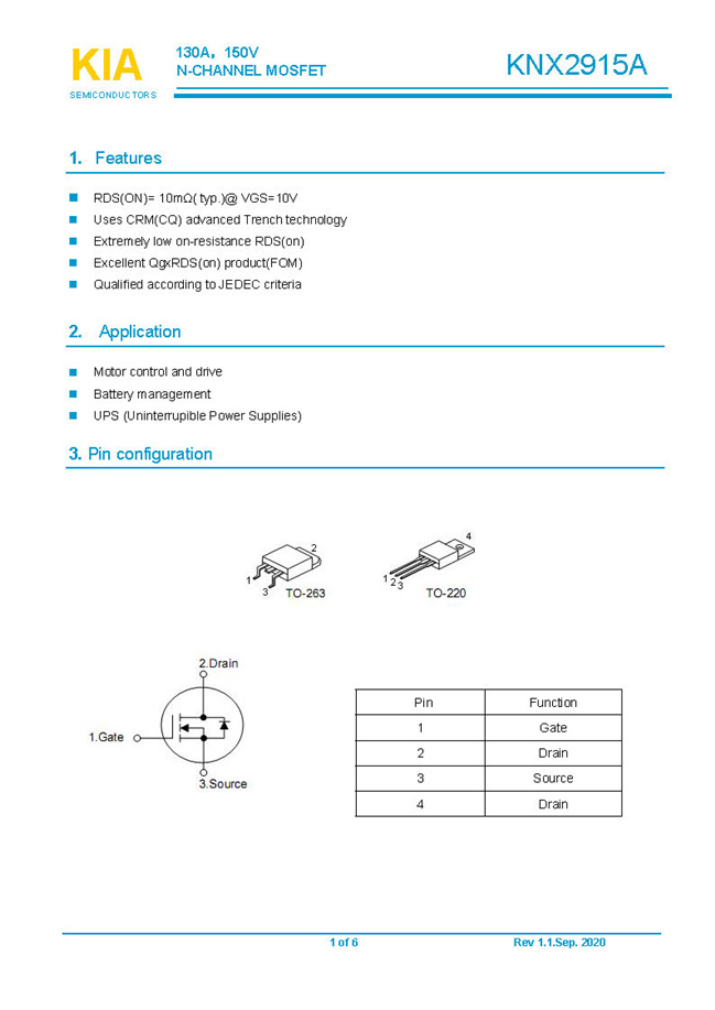 参数: ID(A): 130 BVDSS(V): 150 RDS(ON): 10mΩ Qg(nC): 70 Package: TO-220.TO-263