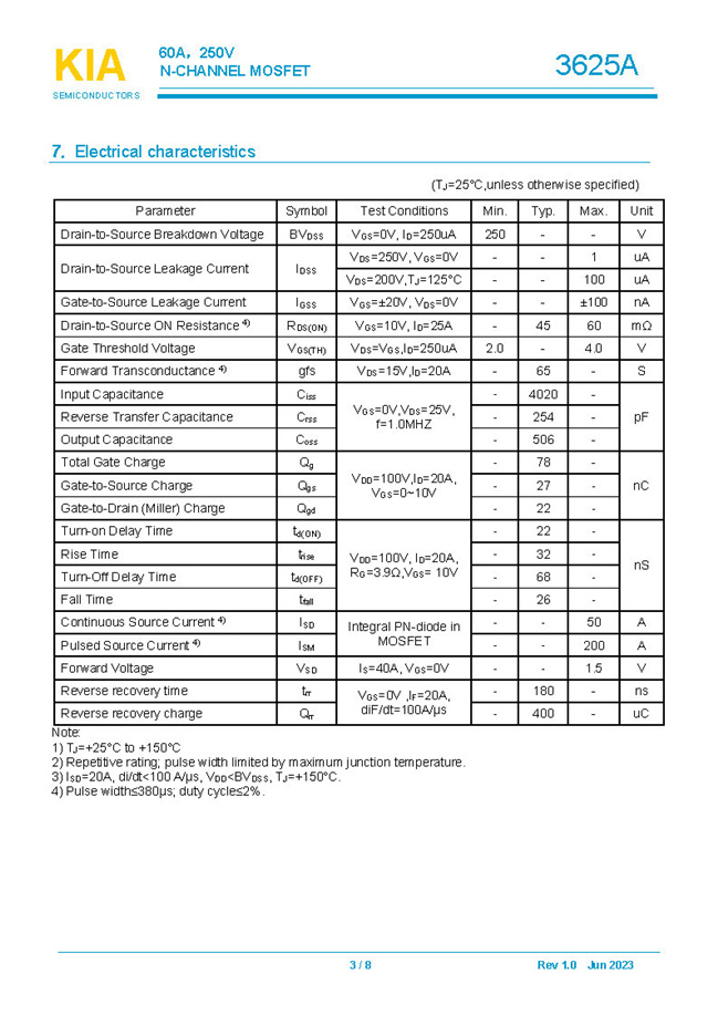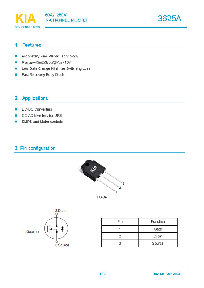 参数: ID(A): 60 BVDSS(V): 250 RDS(ON): 45mΩ Qg(nC): 78 Package: TO-3P
