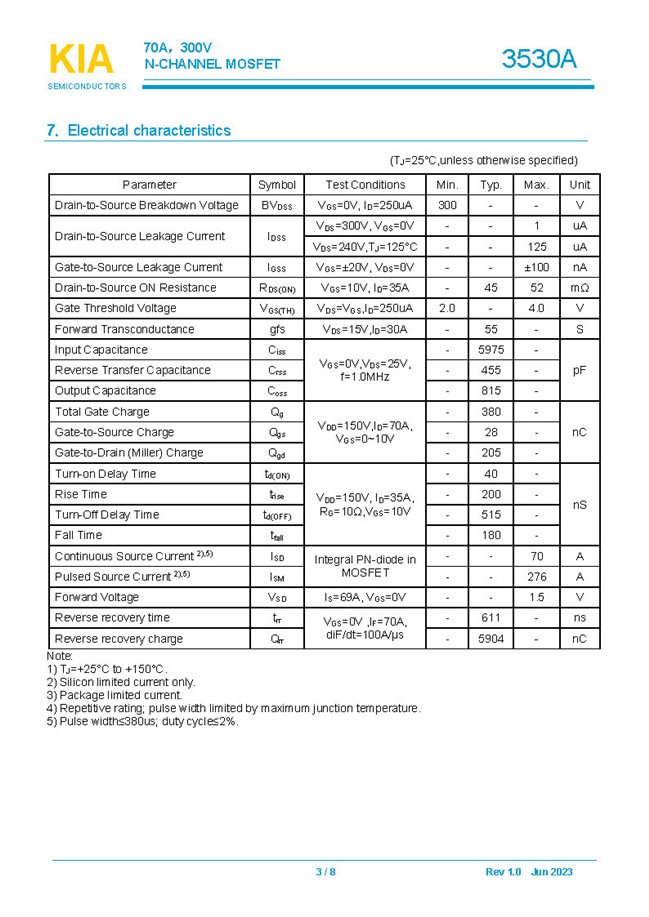 参数: ID(A): 70 BVDSS(V): 300 RDS(ON): 45mΩ Qg(nC): 380 Package: TO-3P