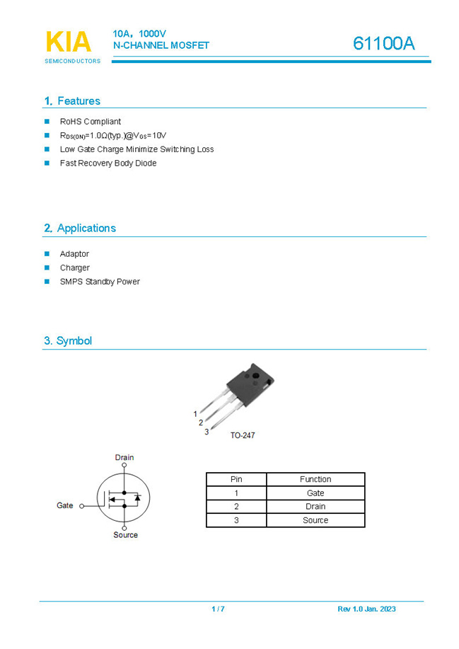 实亿国际参数: ID(A): 10 BVDSS(V): 1000 RDS(ON): 1.0Ω Qg(nC): 71 Package: TO-247