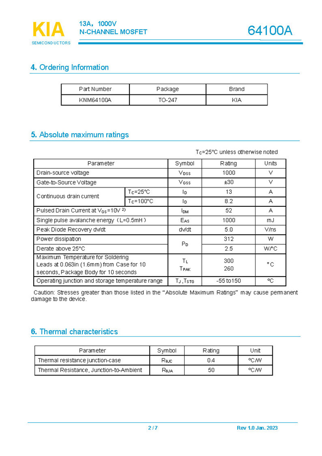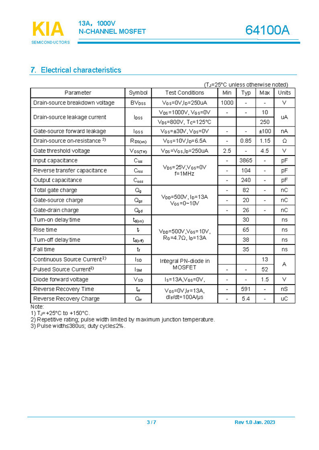参数: ID(A): 13 BVDSS(V): 1000 RDS(ON): 0.85Ω Qg(nC): 82 Package: TO-247