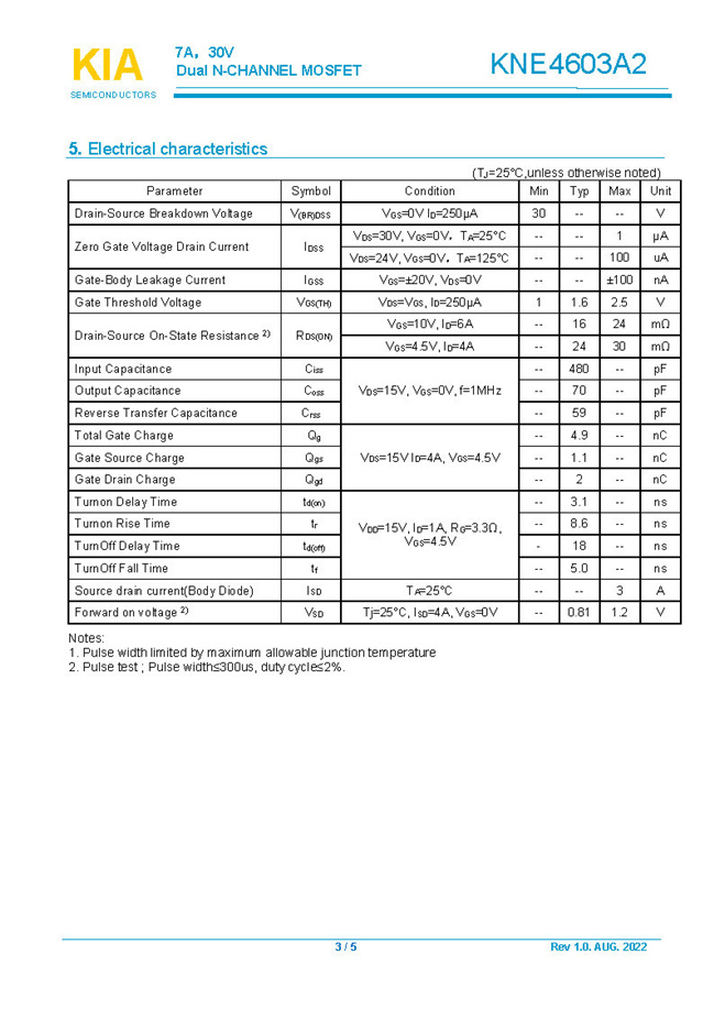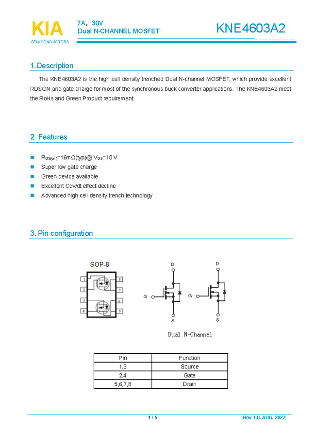 参数: ID(A): 7 BVDSS(V): 30 RDS(ON): 16mΩ Qg(nC): 4.9 Package: SOP-8