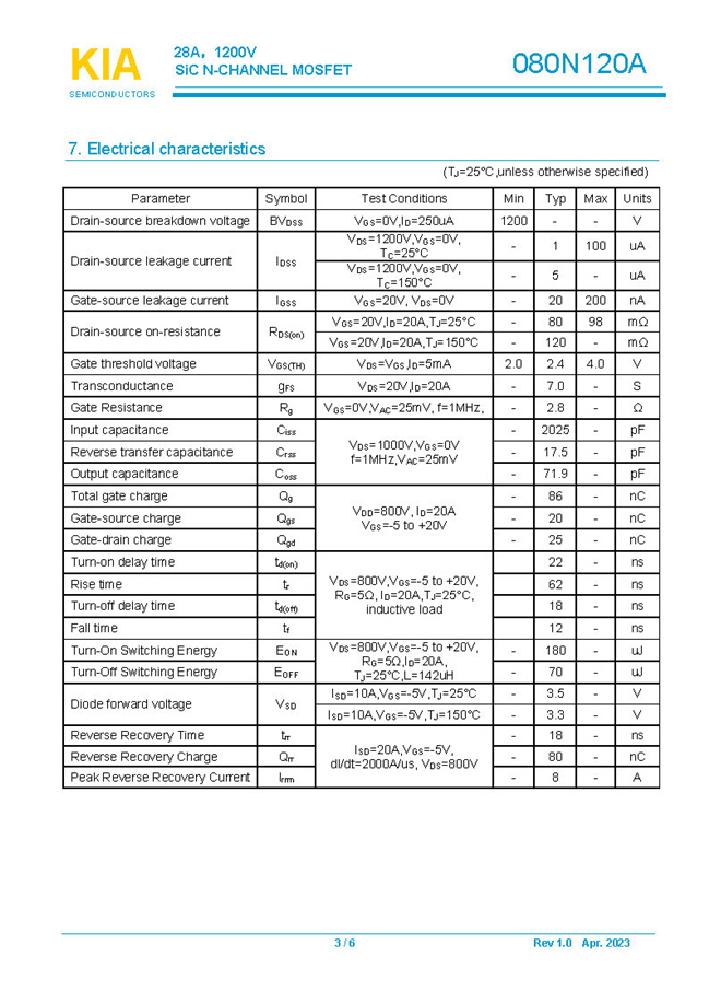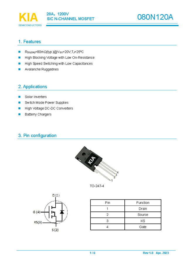 参数: ID(A): 28 BVDSS(V): 1200 RDS(ON): 80mΩ Qg(nC): 86 Package: TO-247-4