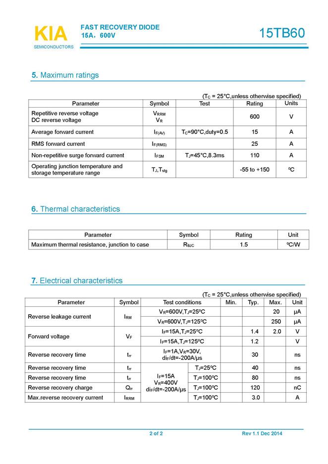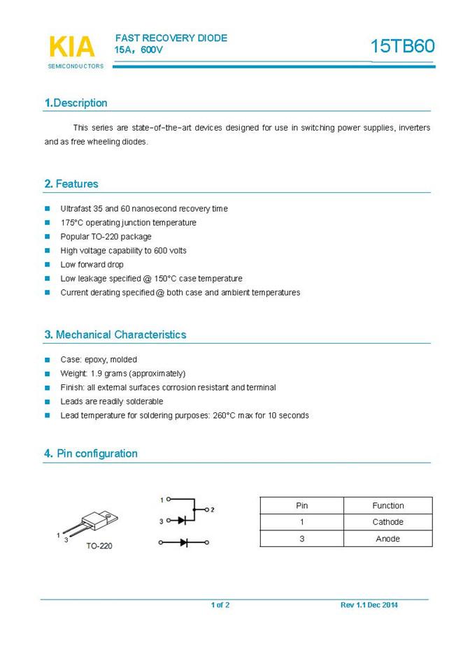 参数: VR(V): 600V IF(A): 15A Trr(ns): 30NS Package: TO-220