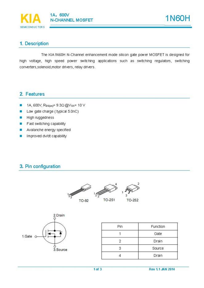 实亿国际参数: ID(A): 1 BVDSS(V): 600 RDS(ON): 11.5 Qg(nC): 6.2 Package: TO-01、TO-251、TO-252