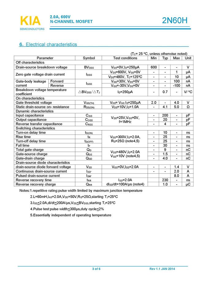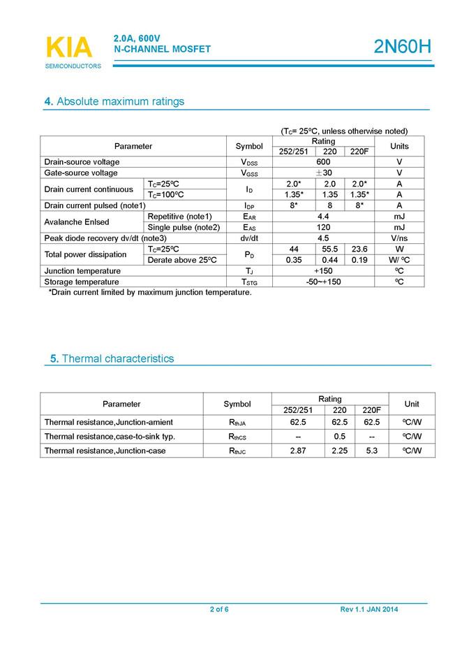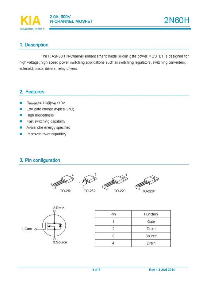 参数: ID(A): 2 BVDSS(V): 600 RDS(ON): 5 Qg(nC): 9 Package: TO-251、TO-252、TO-220、TO-220F