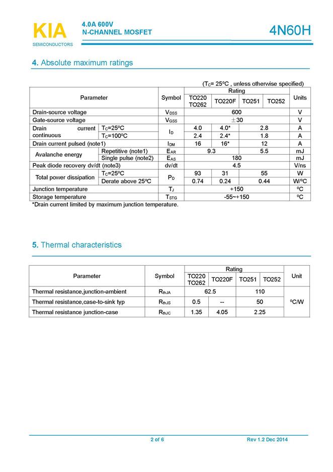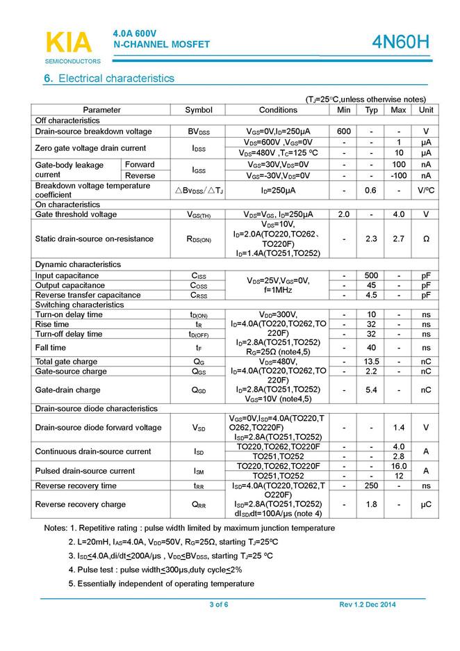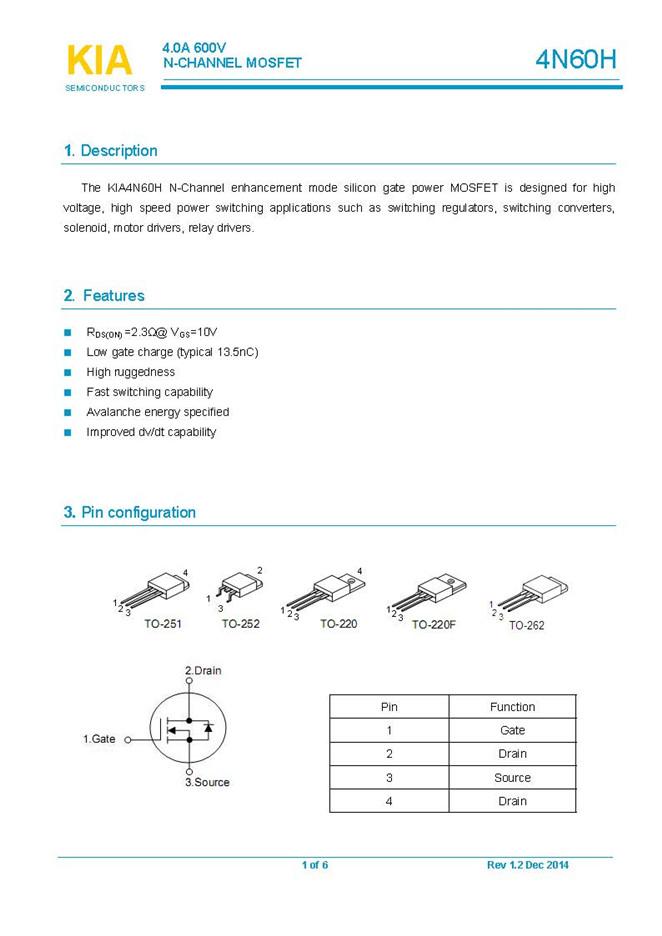 参数: ID(A): 4 BVDSS(V): 600 RDS(ON): 2.7 Qg(nC): 13.5 Package: TO-251、TO-252、TO-220、TO-220F、TO-262