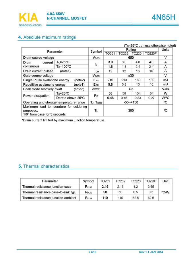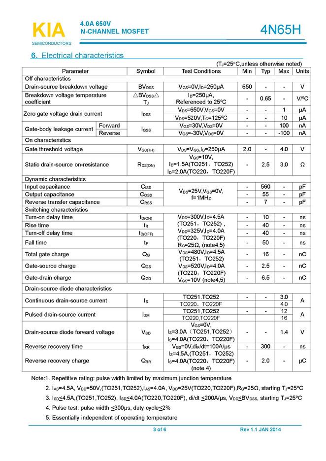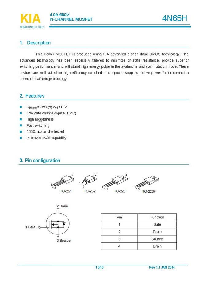 参数: ID(A): 4 BVDSS(V): 650 RDS(ON): 3 Qg(nC): 16 Package: TO-251、TO-252、TO-220、TO-220F