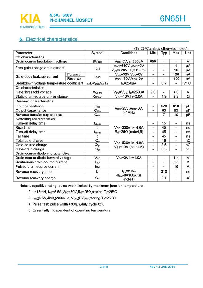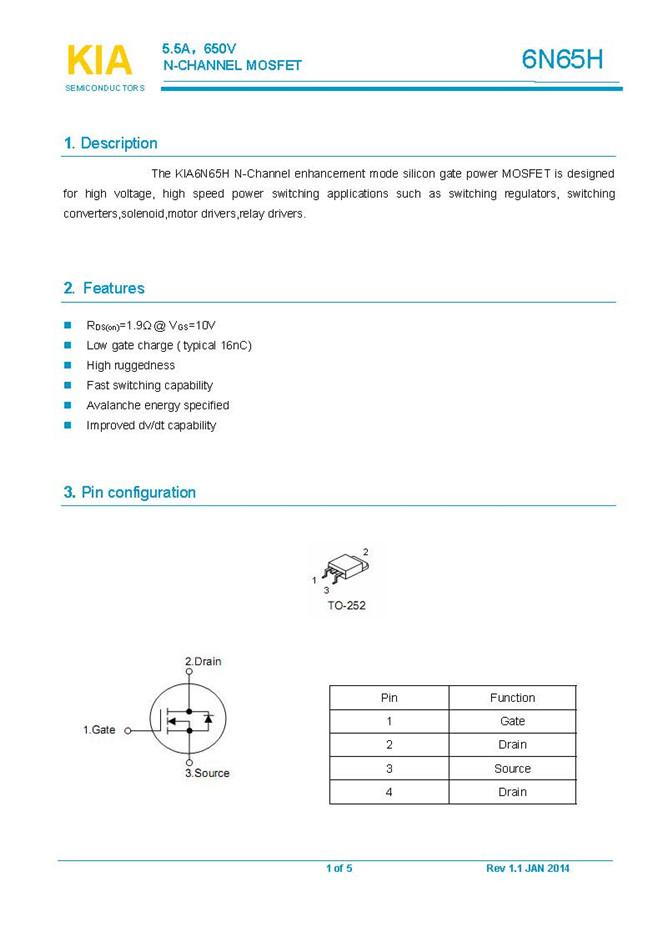 参数: ID(A): 6 BVDSS(V): 650 RDS(ON): 2.2 Qg(nC): 16 Package: TO-252、TO-220、TO-220F