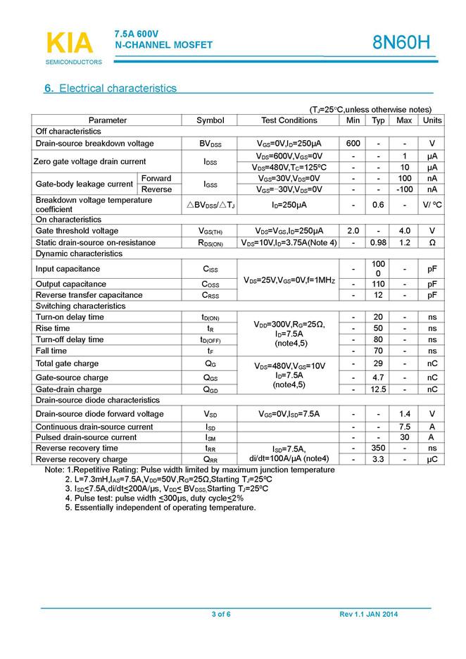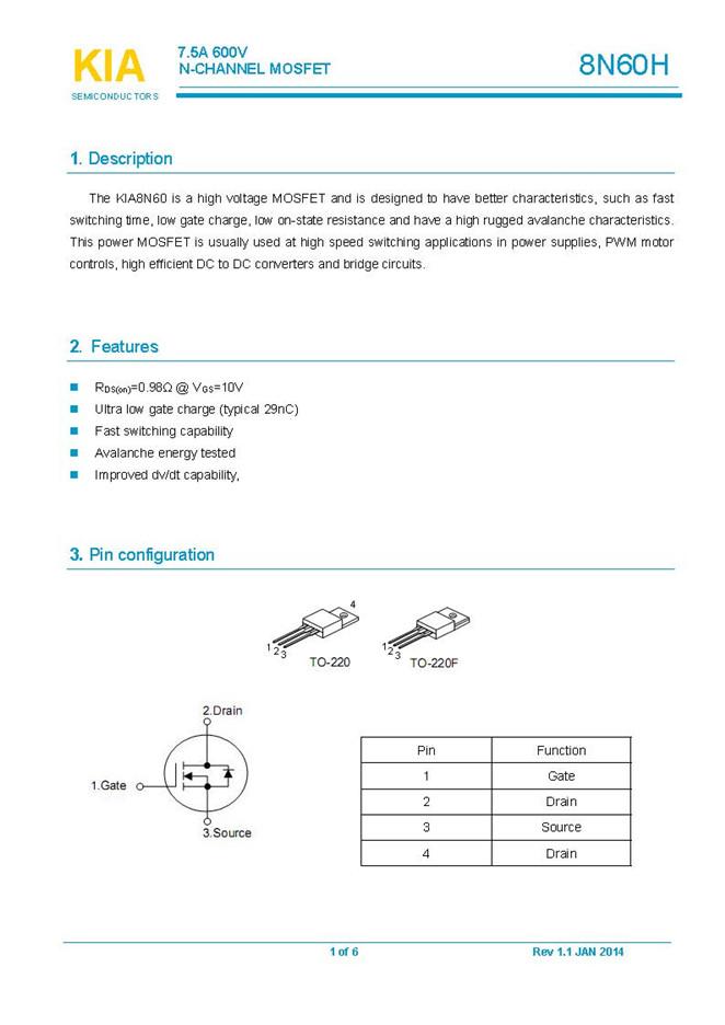 参数: ID(A): 7.5 BVDSS(V): 600 RDS(ON): 1.2 Qg(nC): 29 Package: TO-220、TO-220F