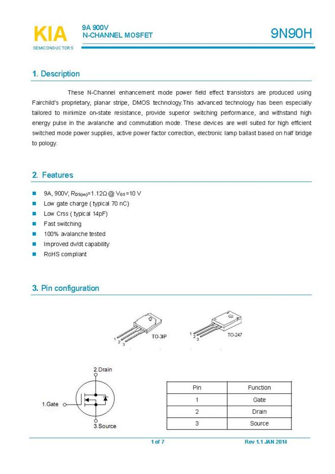参数: ID(A): 9 BVDSS(V): 900 RDS(ON): 1.4 Qg(nC): 70 Package: TO-220F、TO-247、TO-3P