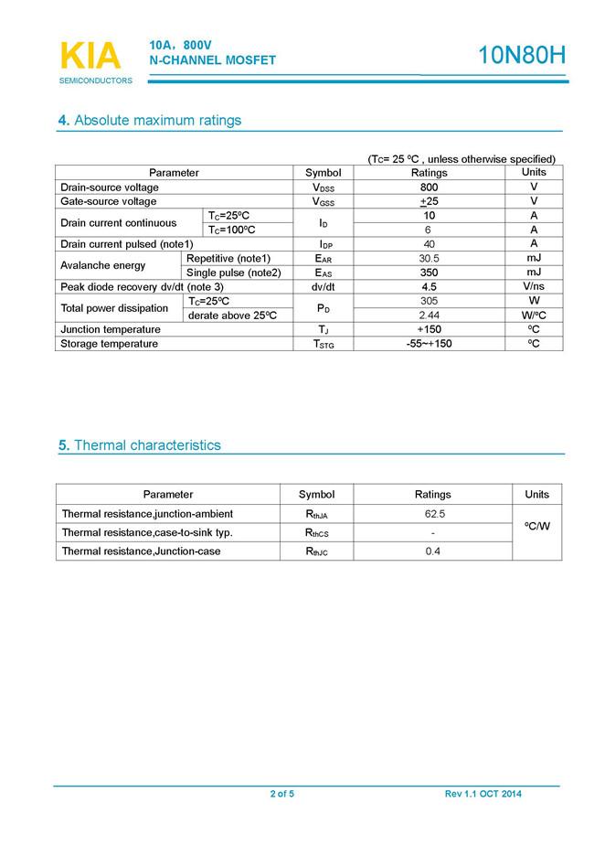 名称: KIA10N80H