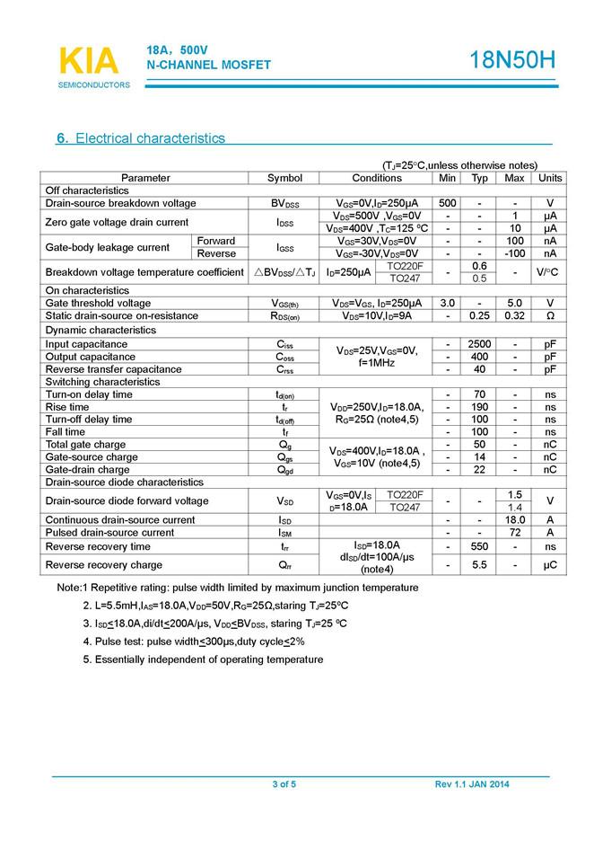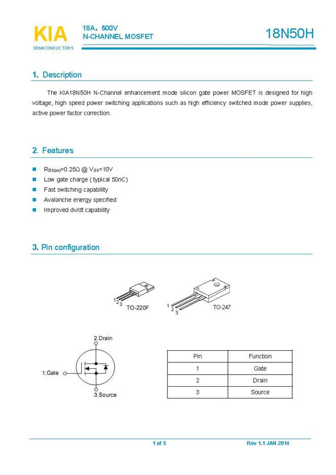 参数: ID(A): 18 BVDSS(V): 500 RDS(ON): 0.32 Qg(nC): 50 Package: TO-220F、TO-247
